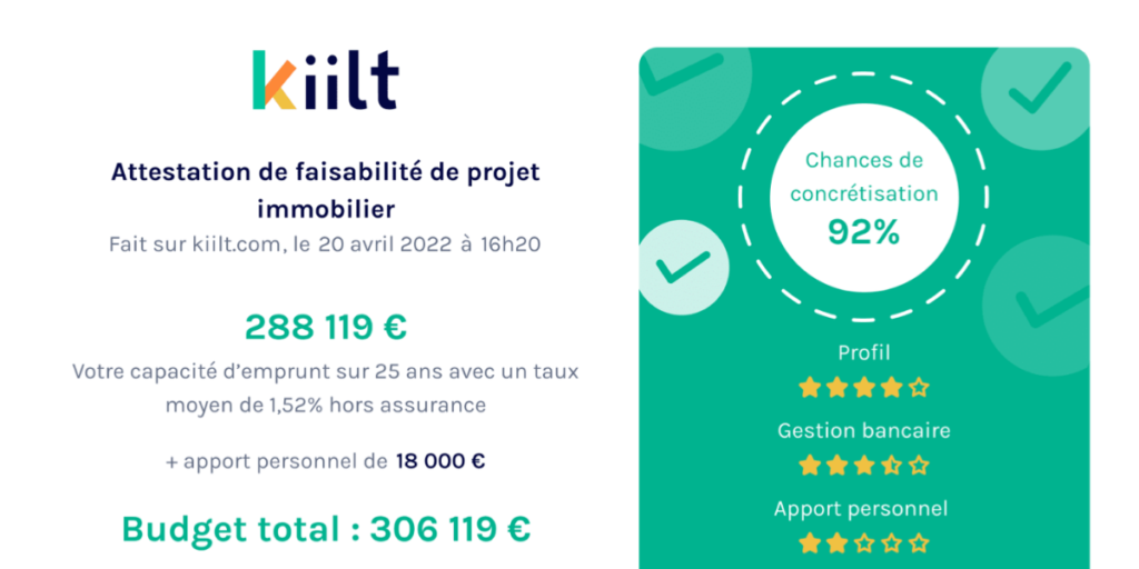 Pour obtenir cette attestation, regroupez les documents contenant les éléments cités plus haut et envoyez-les à votre banquier ou votre courtier. Sinon, rendez-vous sur Kiilt où les avancées technologiques ont été mises au service des futurs acheteurs immobiliers.